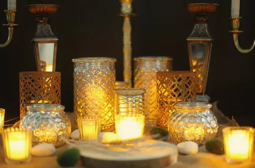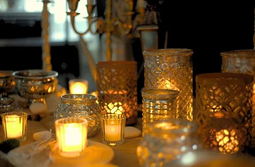 Vintage silver candle jar big with lights